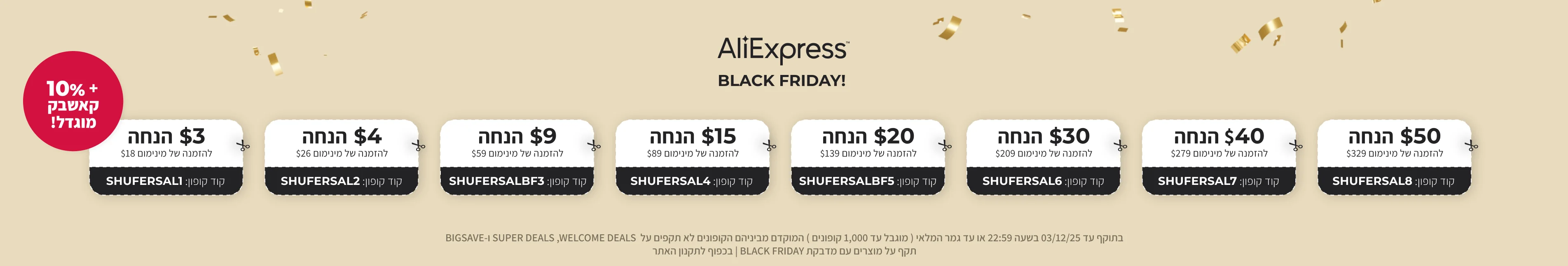 • שימוש בקוד קופון חיצוני שלא סופק על ידי החנות או על ידי האתר שלנו לא יזכה בקאשבק.