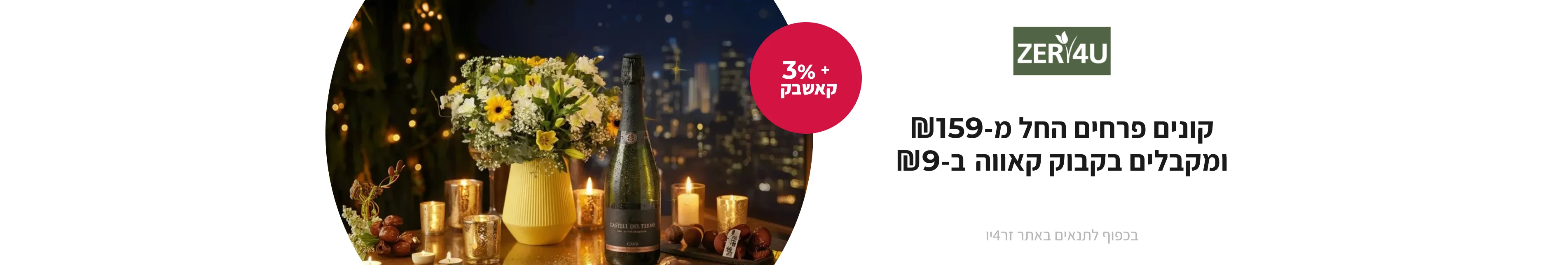 ZER4U • זר4יו - היא רשת הפרחים והמתנות המובילה בישראל, עם ניסיון ומוניטין של שנים. הרשת מציעה מגוון רחב של זרי פרחים מעוצבים, עציצים מטופחים ומתנות ייחודיות – כמו מארזי שוקולד, יין, זרי ממתקים, מתנות לתינוקות, חבילות פינוק ועוד.