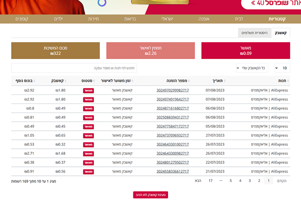 בדף ה'חשבון שלי' תוכלו לראות את הקאשבק שצברתם, ברגע שהקאשבק יהפוך להיות מאושר, תוכלו לטעון את הקאשבק לתו הזהב באפליקציית PayBox החל מהשקל הראשון!